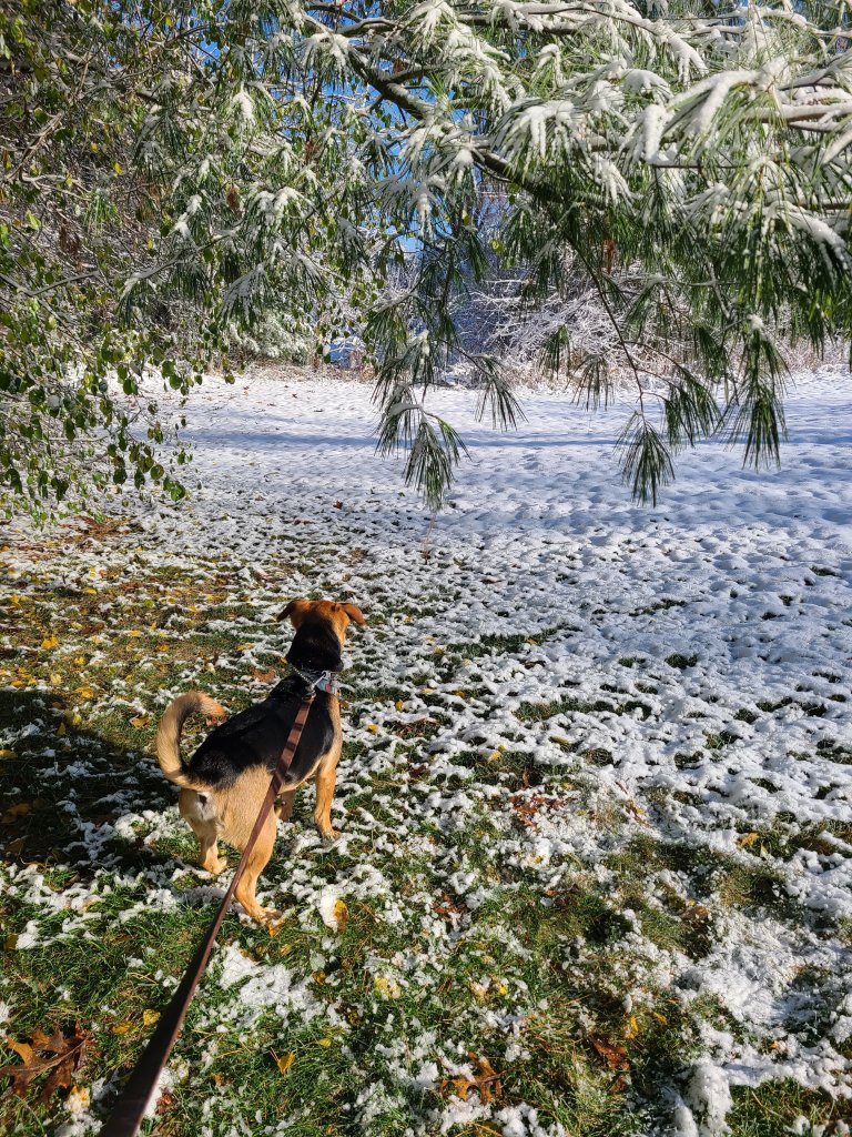 Checking out the first snow of the season